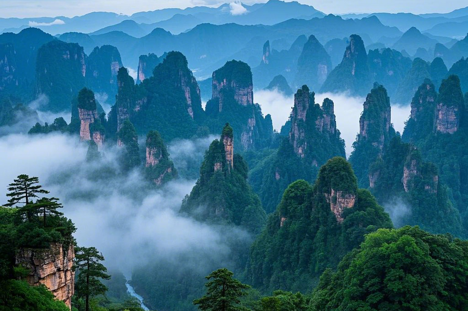 Avatar’s floating mountains come to life in Zhangjiajie’s otherworldly sandstone peaks.