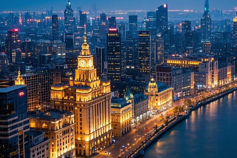 Skyscrapers rise along the Bund, where old-world charm meets China’s most cosmopolitan skyline.